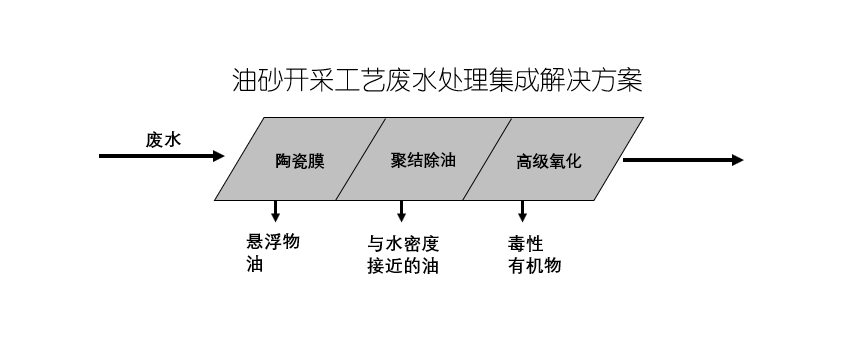 油砂开采过程水回用来源及特点:来源:1、冷凝 – SAGD蒸汽辅助重力泄油   2、尾矿水 – 新的   3、 尾矿池- 老的;污染物:废油、颗粒、有机物、二氧化硅、硫化氢、石脑油/硫醇、溶解固体
